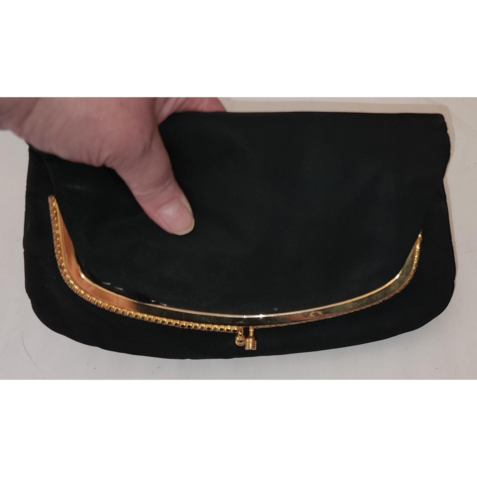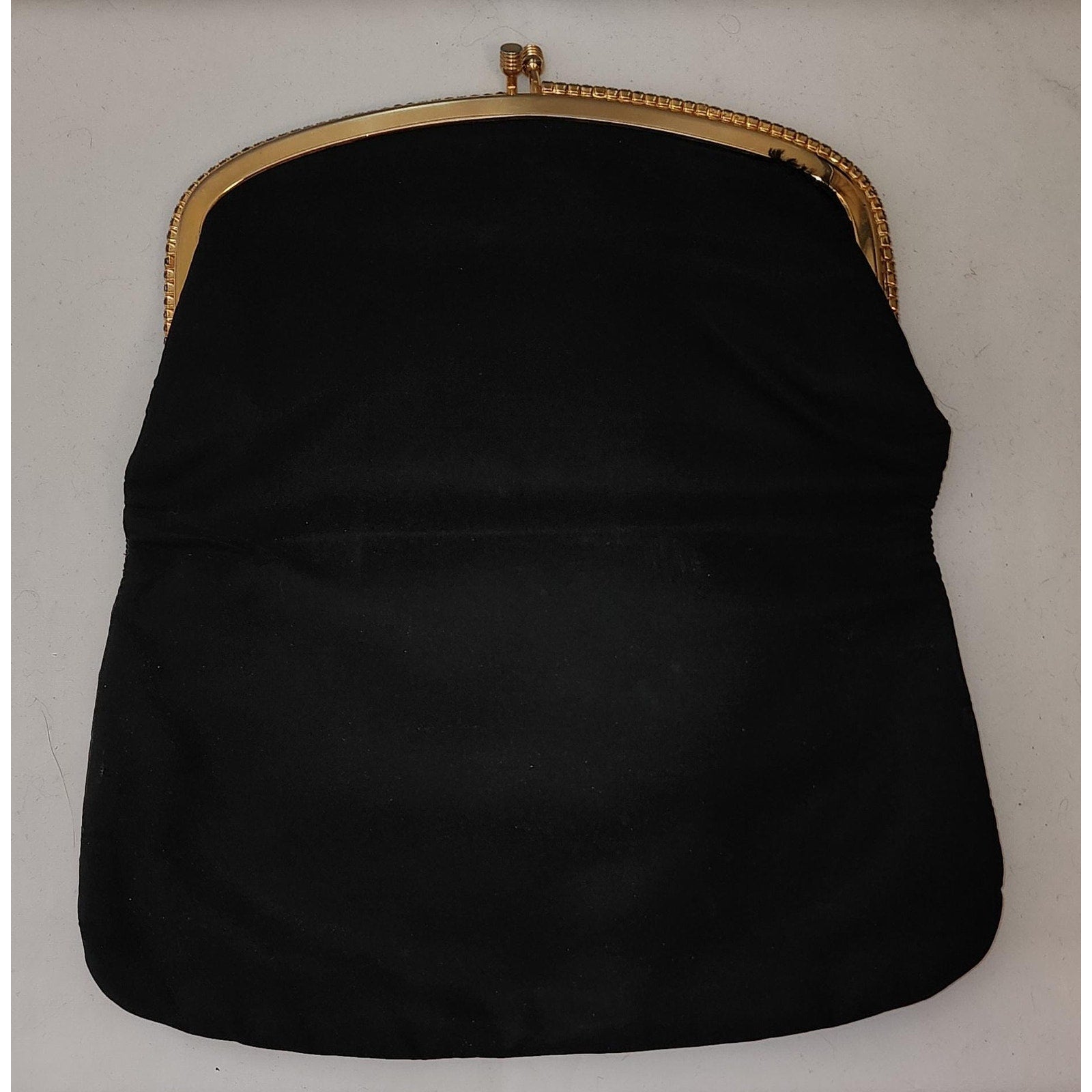 Vintage Clutch Purse 1950s Black Satin Rhinestone Frame Clutch Purse Small Bag Mid Century