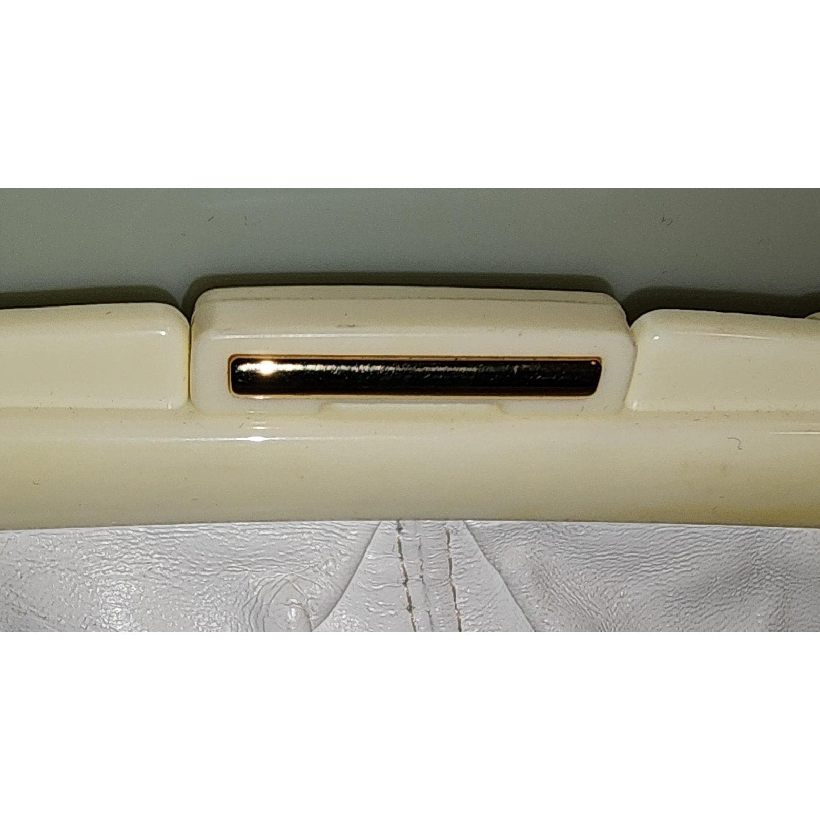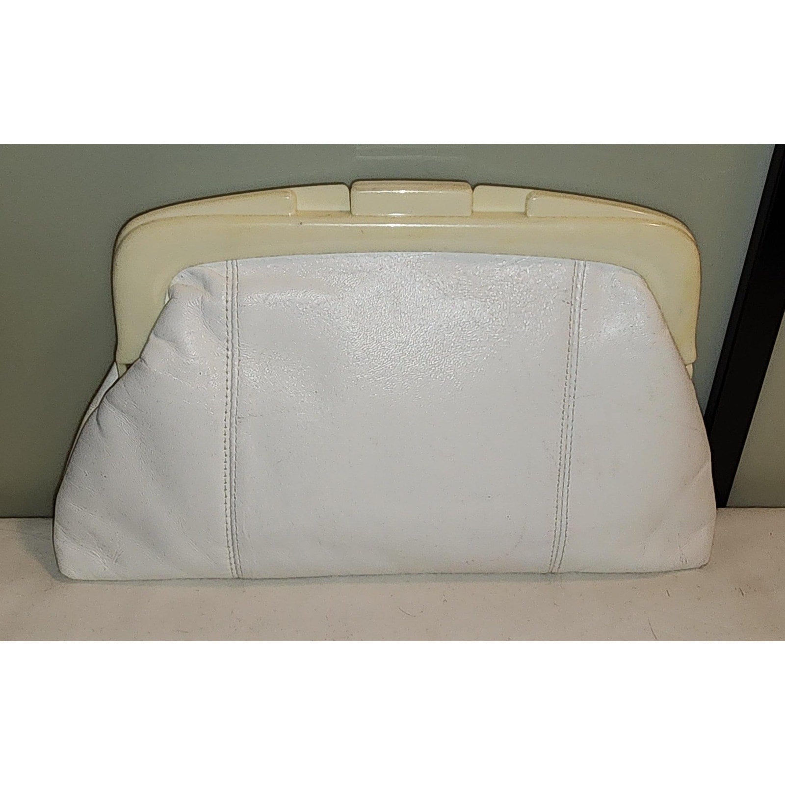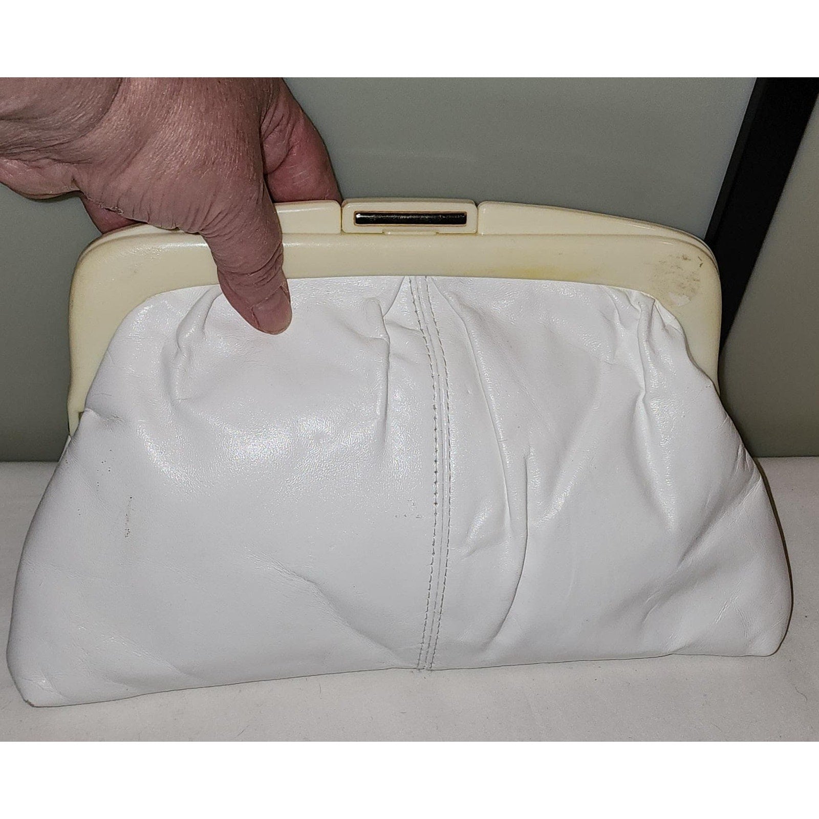 Vintage White Clutch 1970s 80s Cream White Leather Vinyl Clutch Purse Plastic Frame Boho